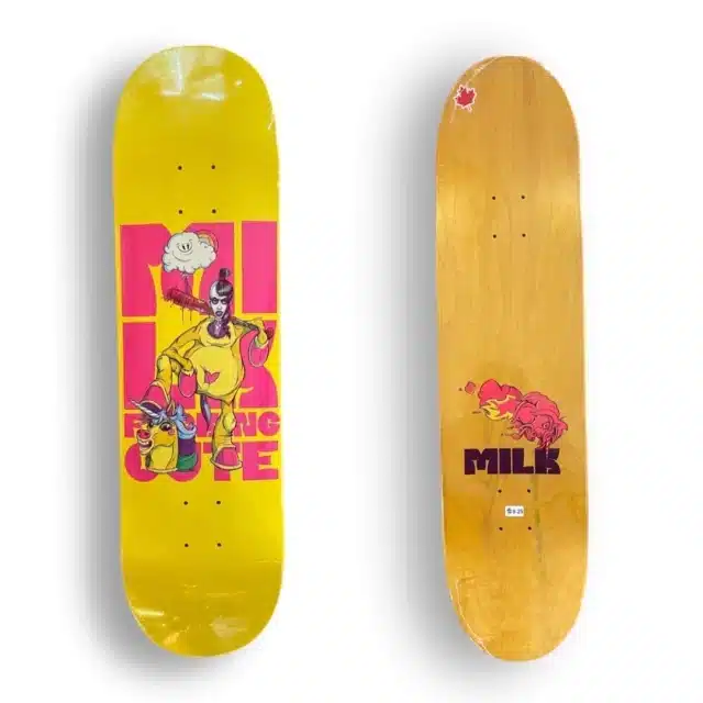 Os Shapes de Maple Milk são fabricados na fábrica BBS Manufacturing, a mesma que faz os shapes da BAKER Skateboards, Real, Deathwish, DGK e outras marcas internacionais.
